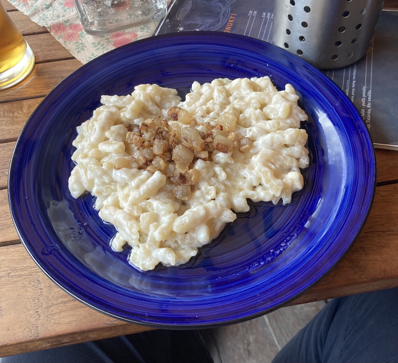 Fig. 10: Slovakian halušky with sheep cheese and fried bacon.