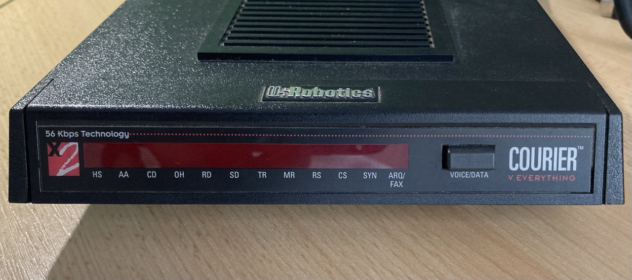 - USR Courier V.Everything 56K Voice Faxmodem (type Czech/Slovakia External) as dial-in server, and client modem- options: HST, V.32B, V.34+, x2