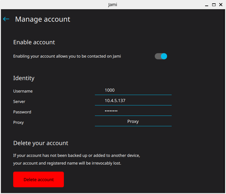 Then, we can add created accounts into Jami SIP client for desktop (account 1000), and for iOS (account 2000).