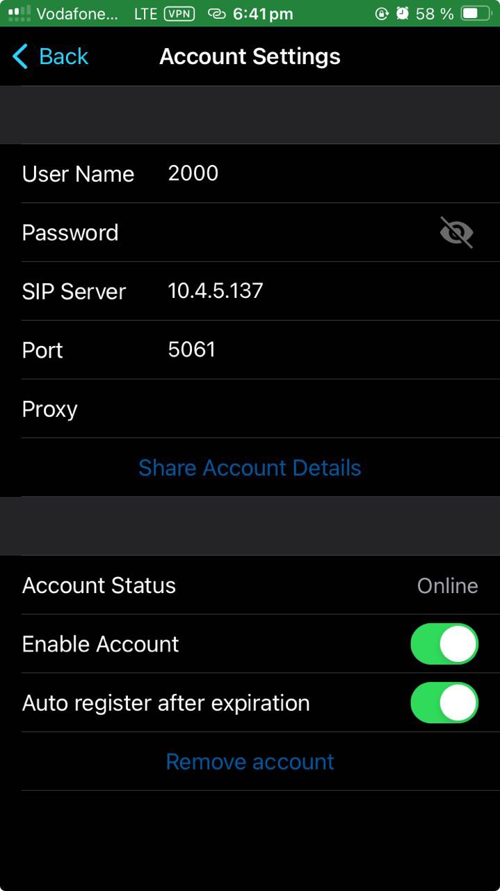 Fig. 4: SIP account registeration in Jami iOS mobile application.